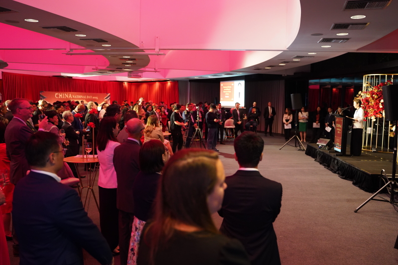 2025年10月1日,驻珀斯总领事付莉华出席澳大利亚中国工商业委员会西澳分会与澳大利亚中国总商会珀斯分会共同举办的中国国庆酒会并致辞。州矿业部长迈克尔、澳贸委西澳办主任卡福里奥及政商界代表300余人出席。